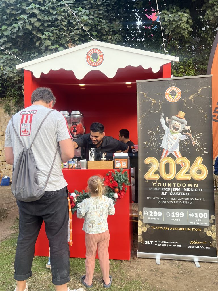Buffalo Wings & Rings Dubai first-ever participation in the JLT Winter Market! December 2025. The JLT Winter Festival was held at the JLT Park Amphitheater and ran for 9 days, bringing festive cheer to the community from 4:00 PM to 10:00 PM each evening.